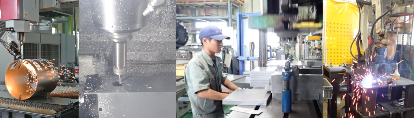当社はレーザー加工、プレス、溶接、切削、積層造形、多関節ロボットなどの設備を揃え、板金・製缶・切削まで一貫対応が可能です。